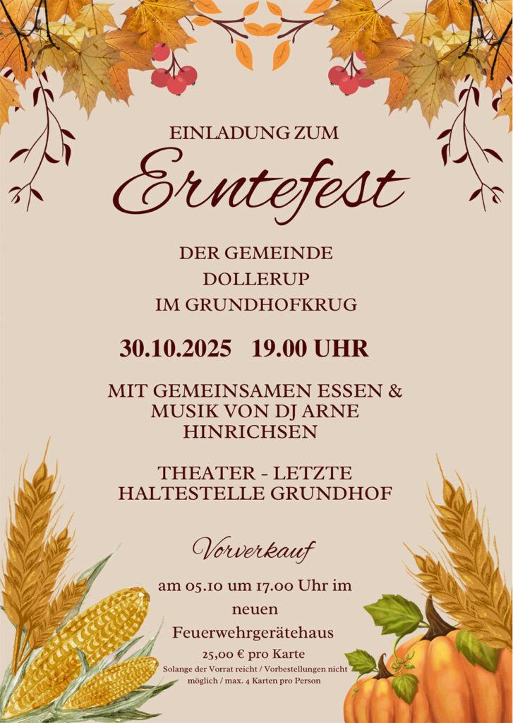 30.10.2025 19:00 Uhr – Erntefest – im Grundhof Krug