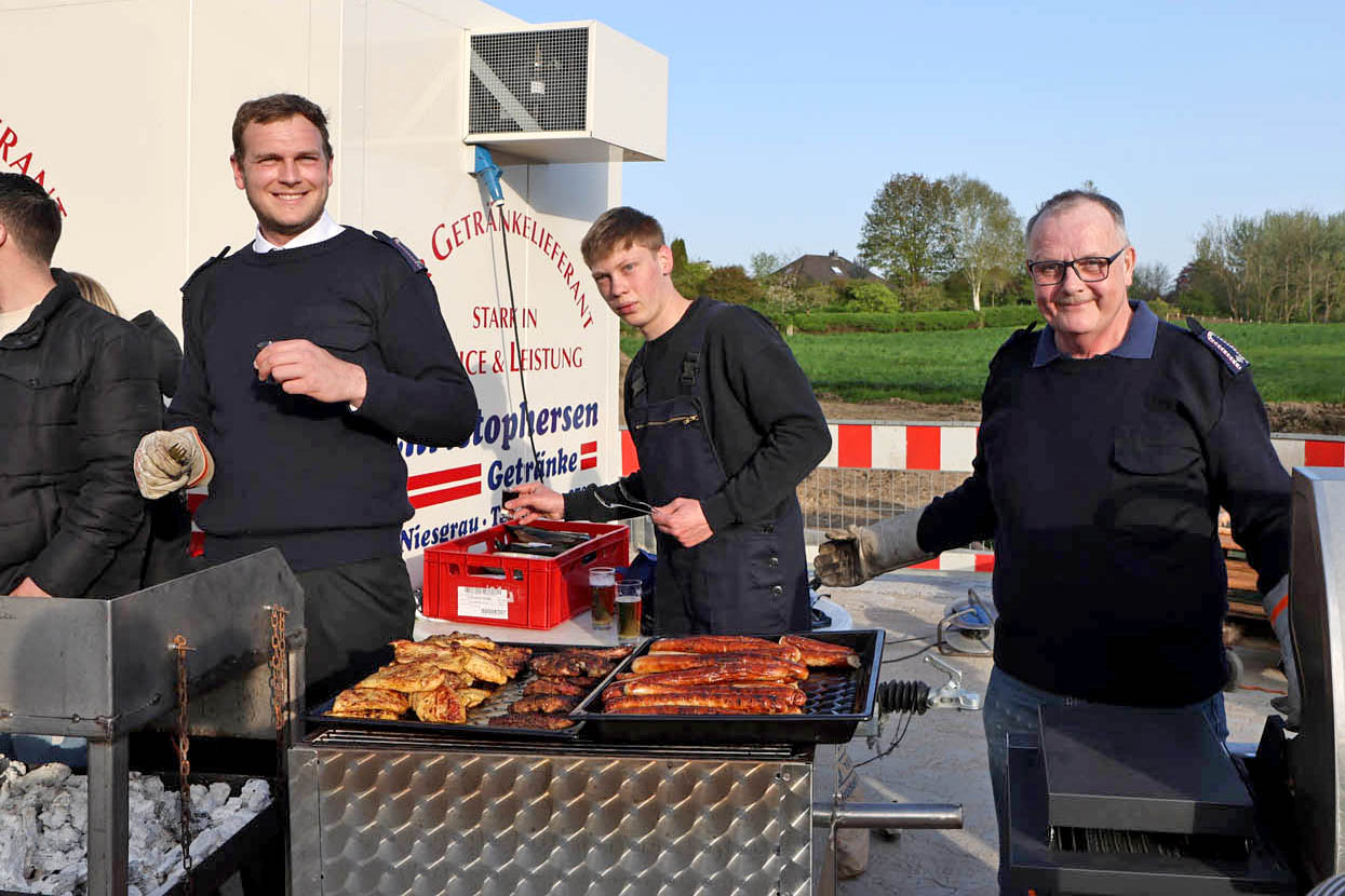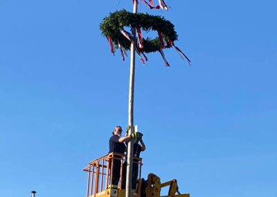 Nachdem der Maibaum gegen 19 Uhr gerichtet war, wurde es Zeit für den gemütlichen Teil bei Leckerem vom Grill und Frischgezapftem oder anderen Durstlöschern sowie Musik.