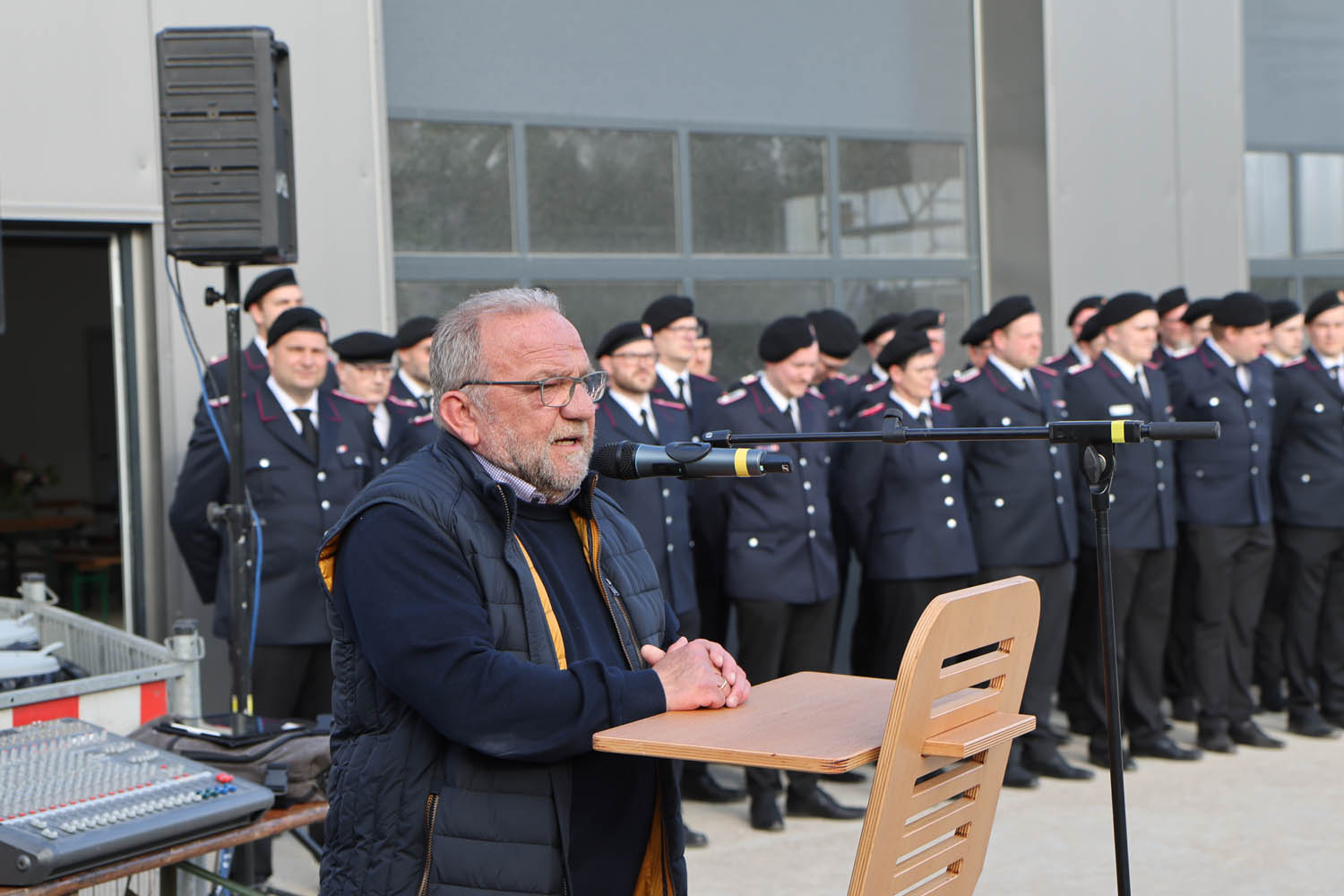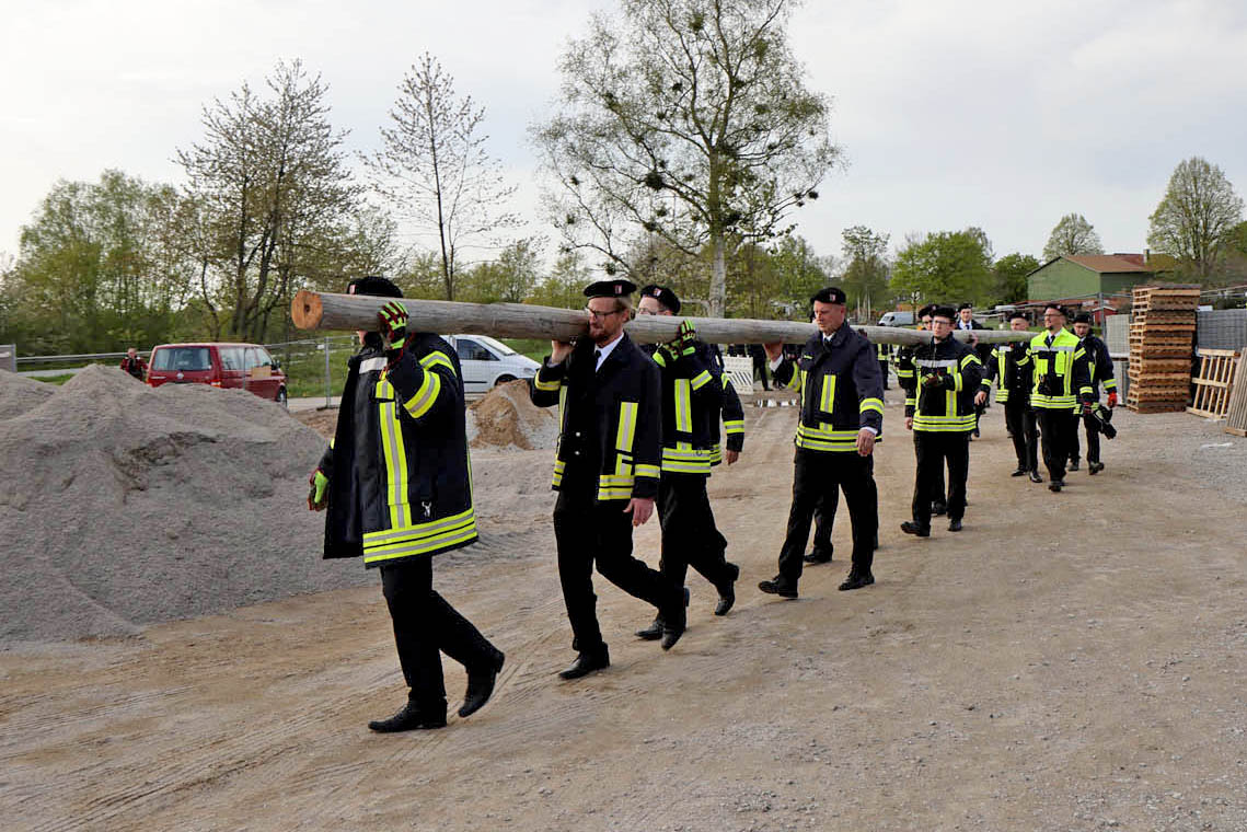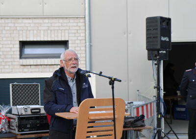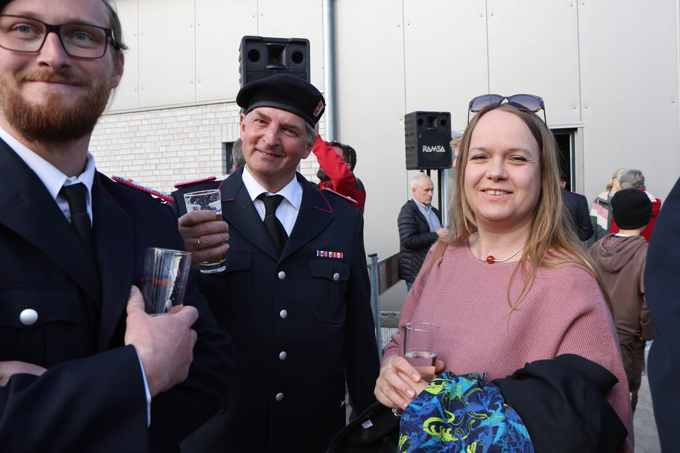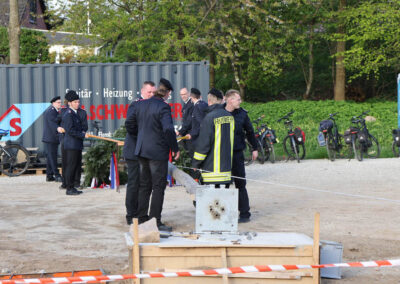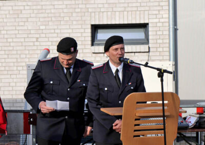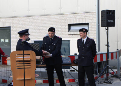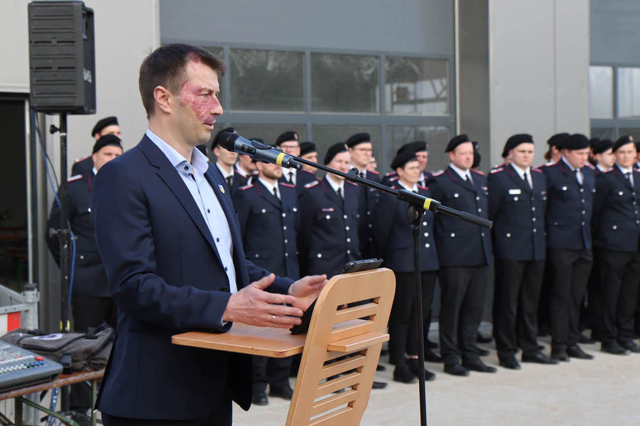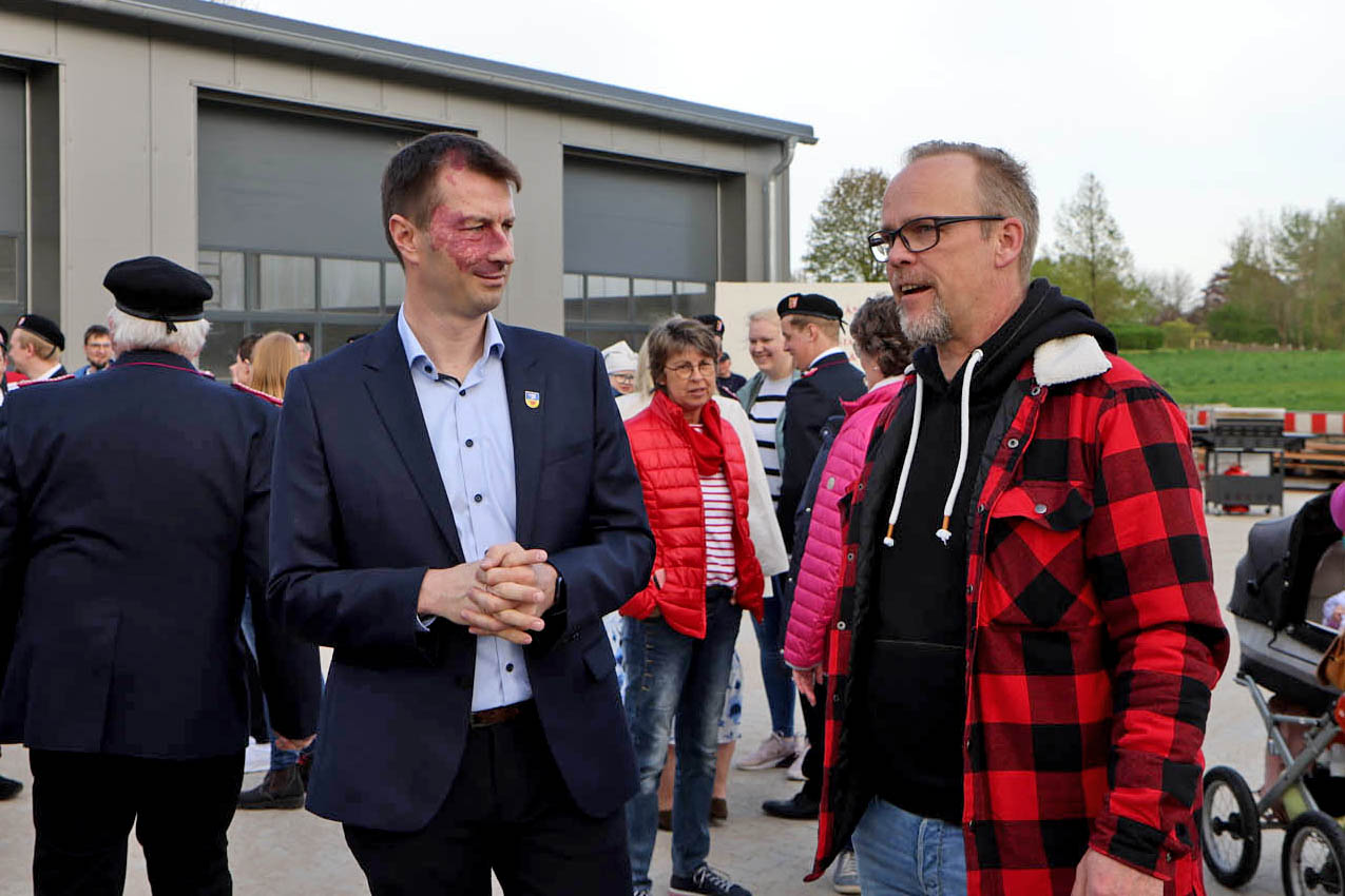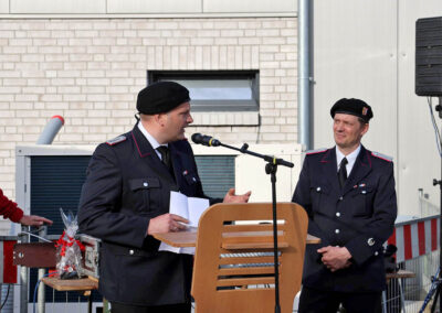 Nach dem die beiden Wehren gemeinsam den Maibaum an seinen neuen Bestimmungsort gebracht haben, begann der offizielle Teil mit den Grußreden aus Politik, Feuerwehren und dem Architekten. Am Ende wurde die Schlüssel symbolisch an die Wehrführer übergeben.