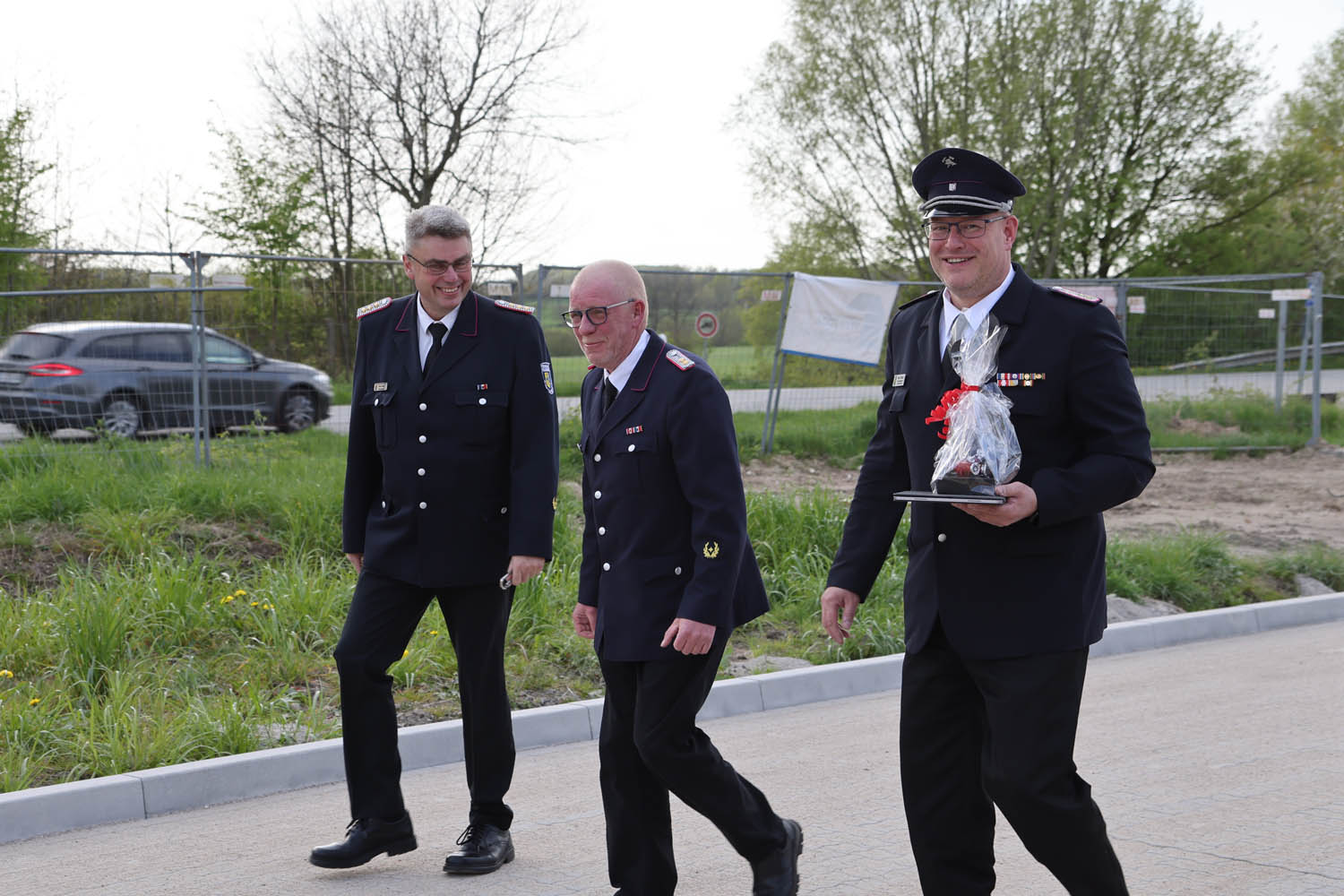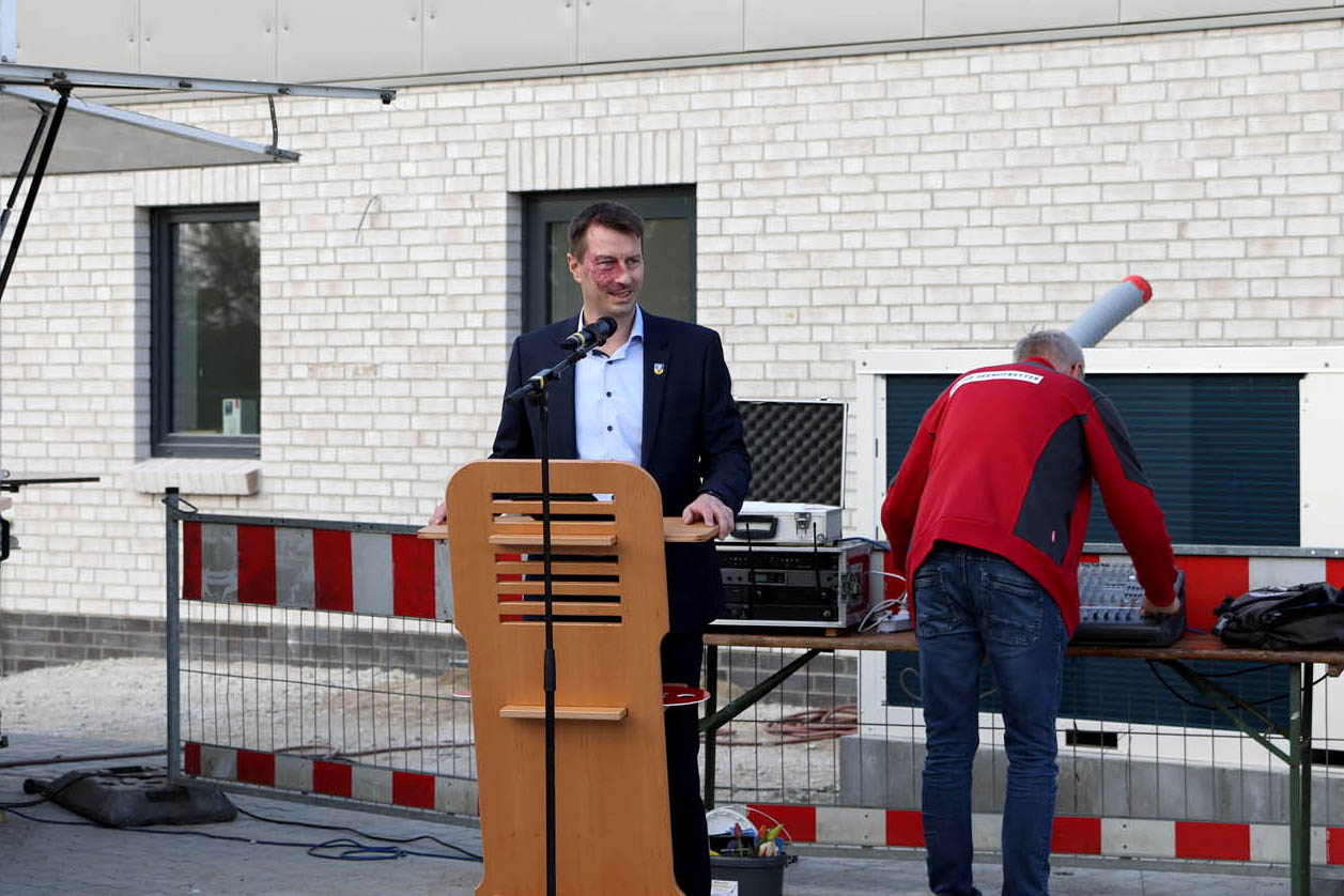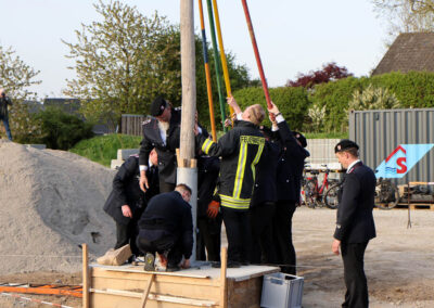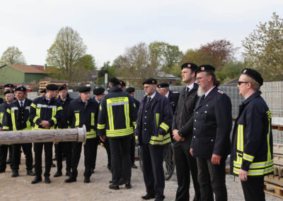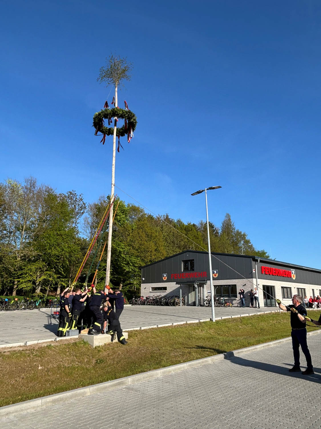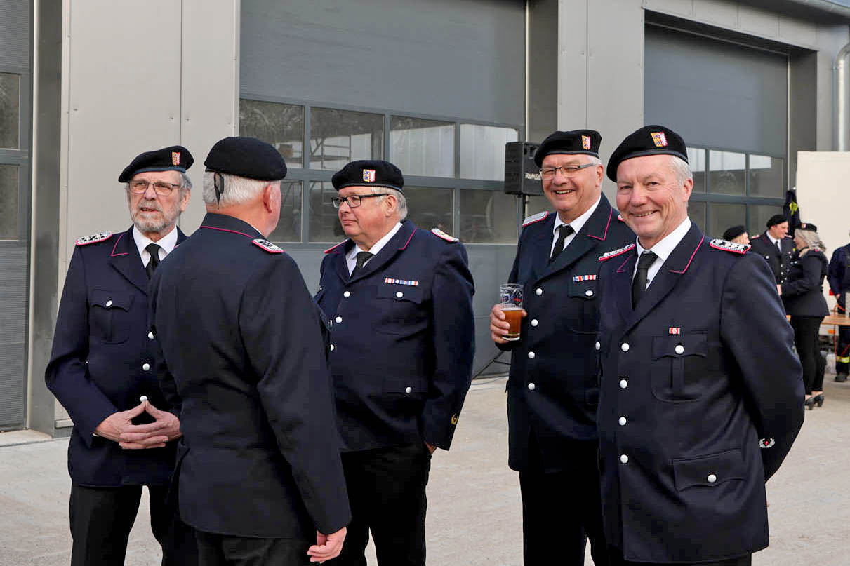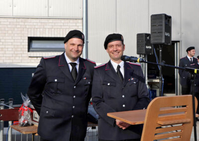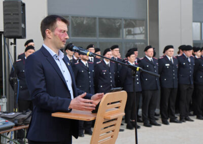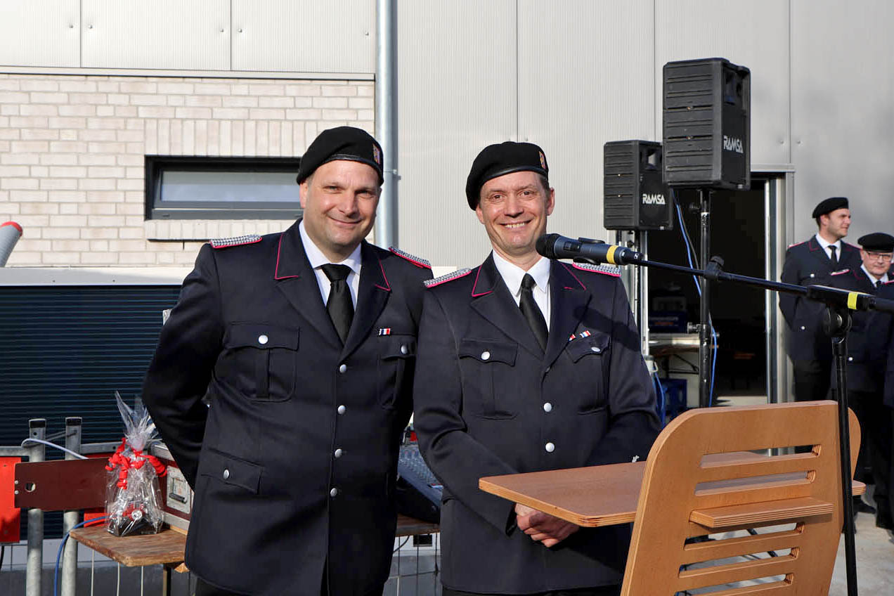 Nach dem die beiden Wehren gemeinsam den Maibaum an seinen neuen Bestimmungsort gebracht haben, begann der offizielle Teil mit den Grußreden aus Politik, Feuerwehren und dem Architekten. Am Ende wurde die Schlüssel symbolisch an die Wehrführer übergeben.