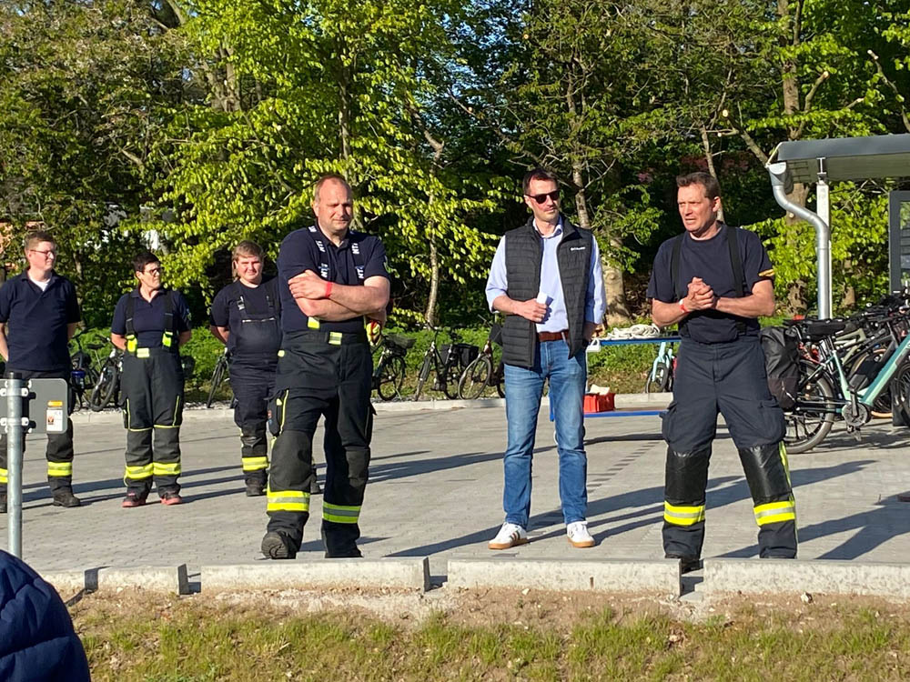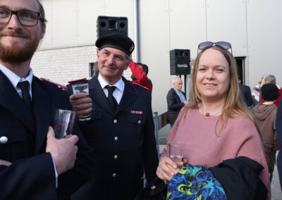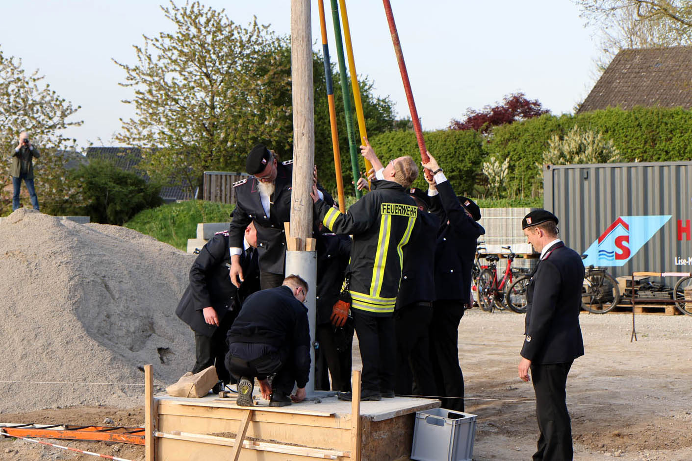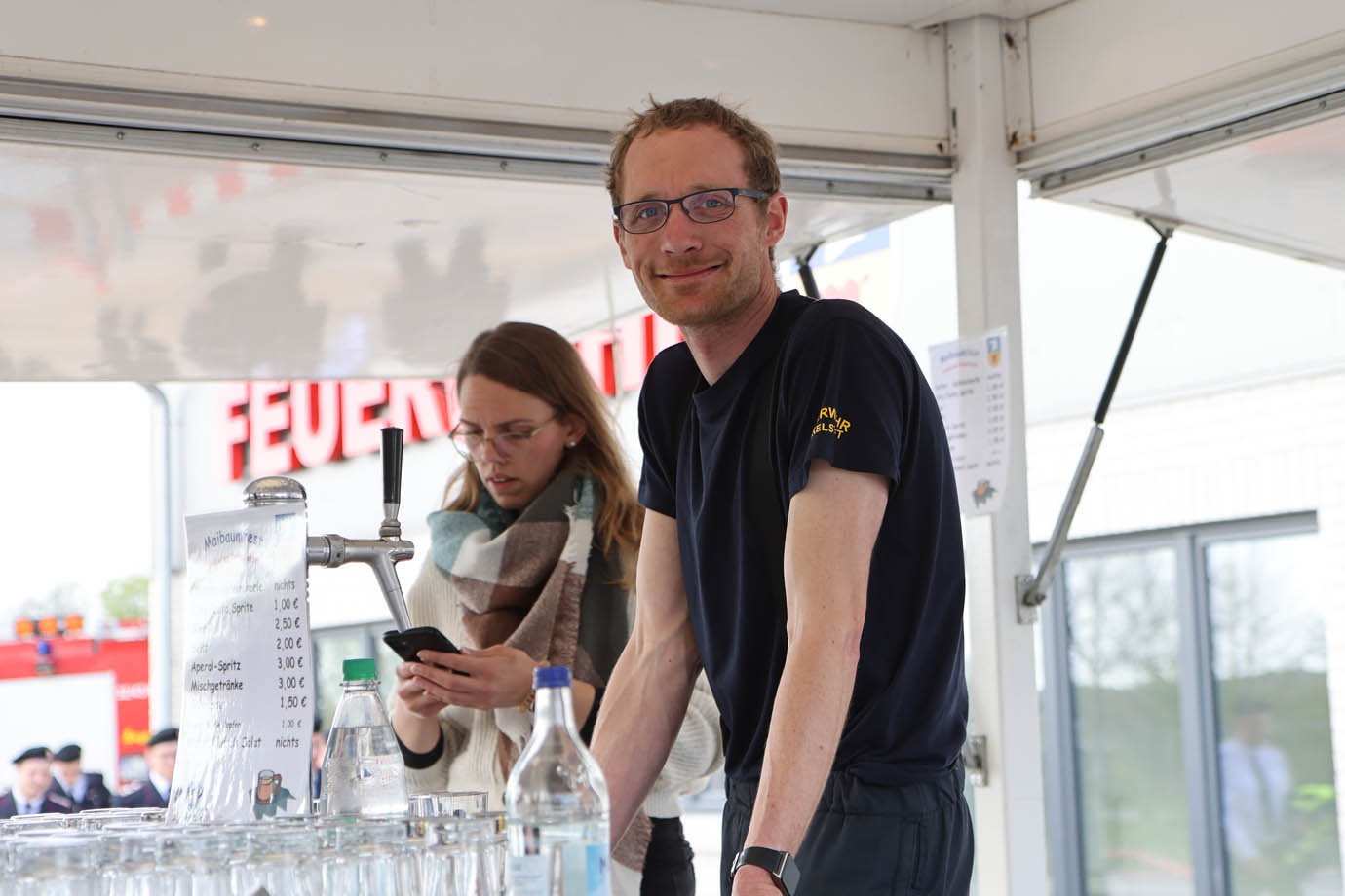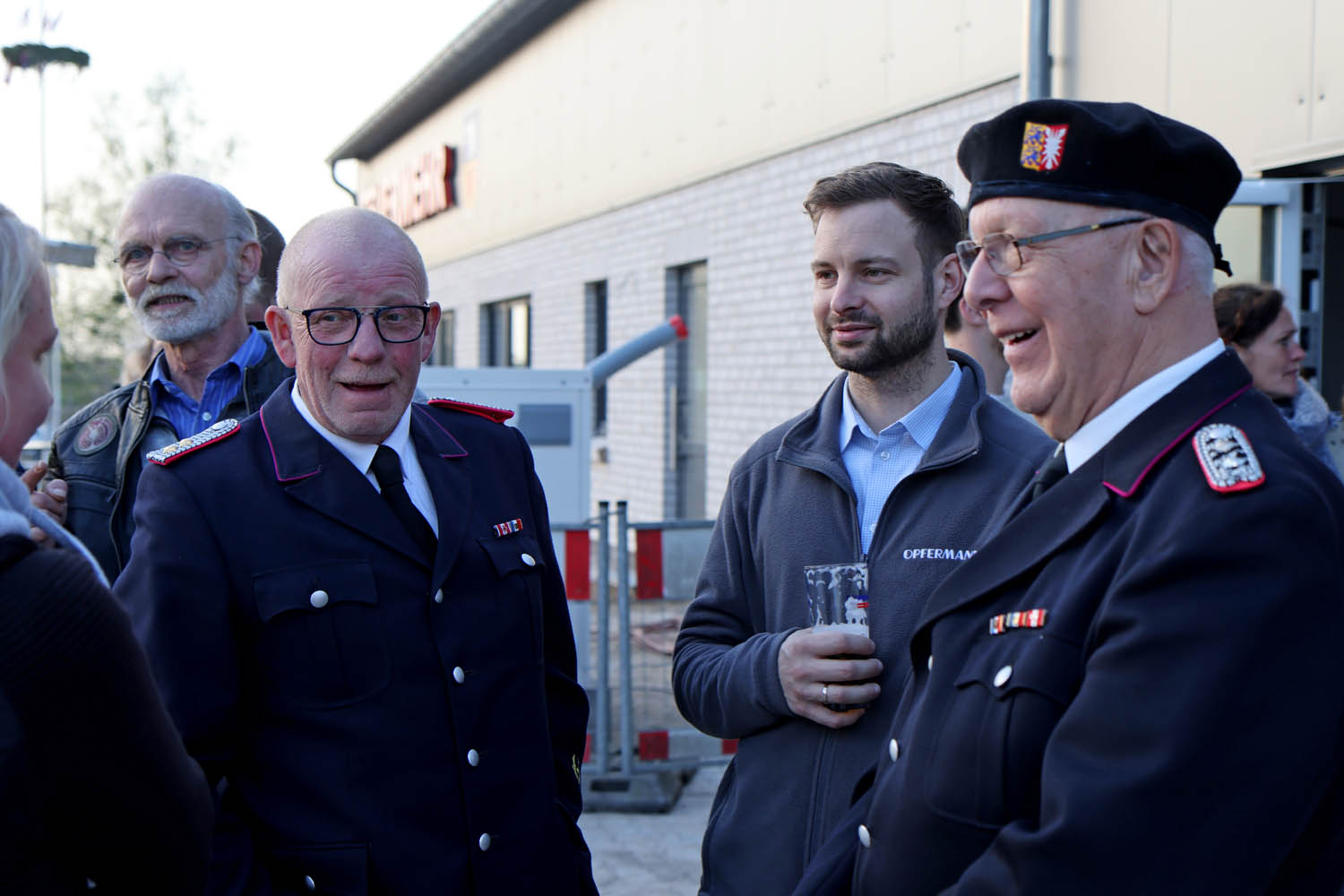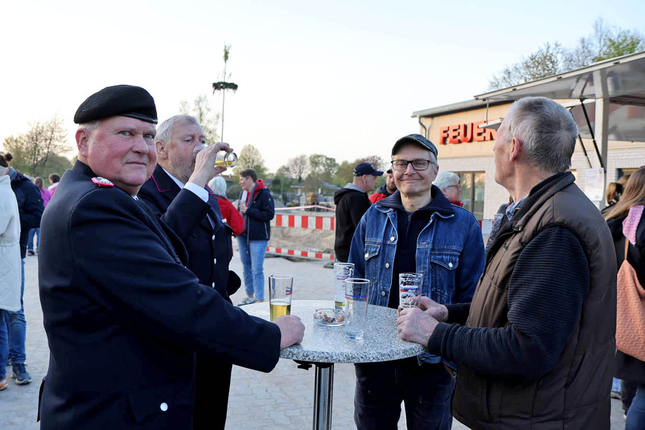 Nach dem die beiden Wehren gemeinsam den Maibaum an seinen neuen Bestimmungsort gebracht haben, begann der offizielle Teil mit den Grußreden aus Politik, Feuerwehren und dem Architekten. Am Ende wurde die Schlüssel symbolisch an die Wehrführer übergeben.
