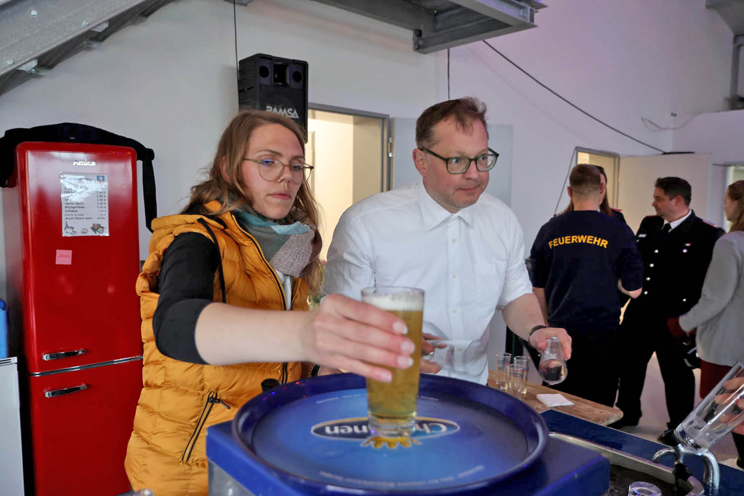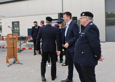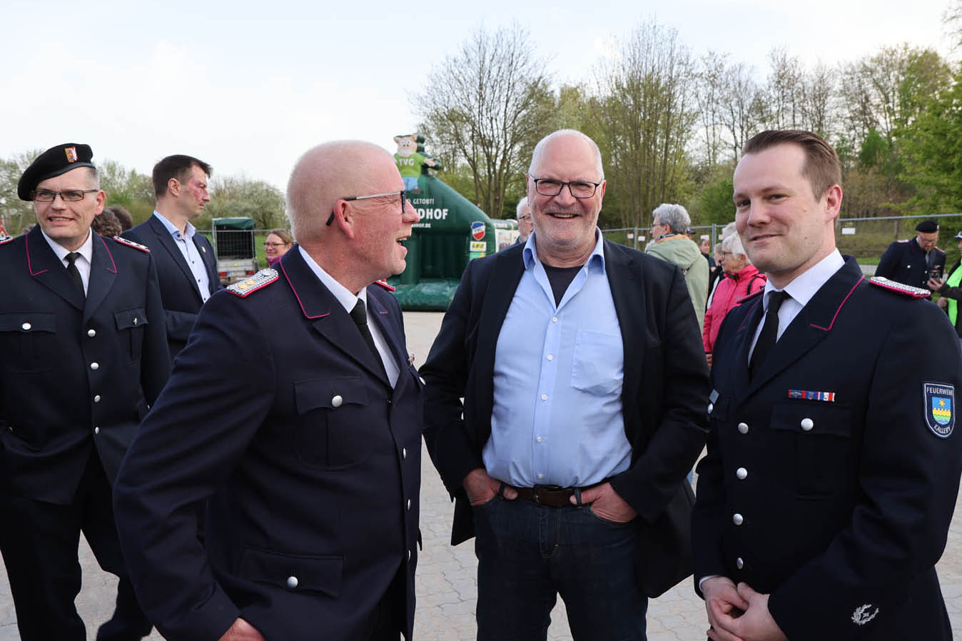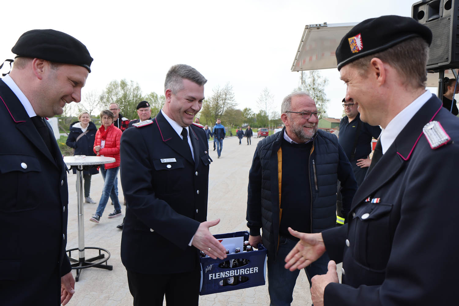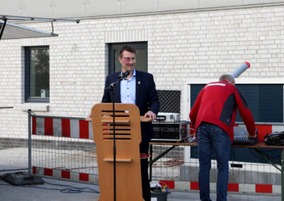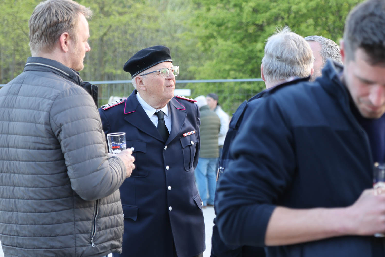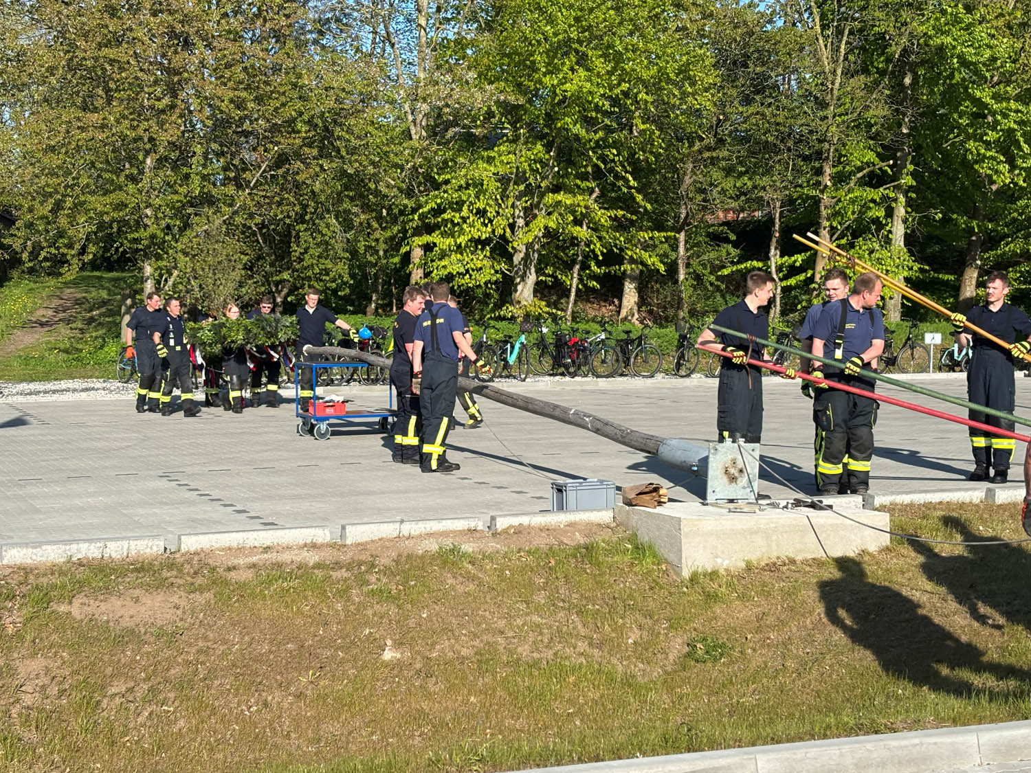 Nach dem die beiden Wehren gemeinsam den Maibaum an seinen neuen Bestimmungsort gebracht haben, begann der offizielle Teil mit den Grußreden aus Politik, Feuerwehren und dem Architekten. Am Ende wurde die Schlüssel symbolisch an die Wehrführer übergeben.