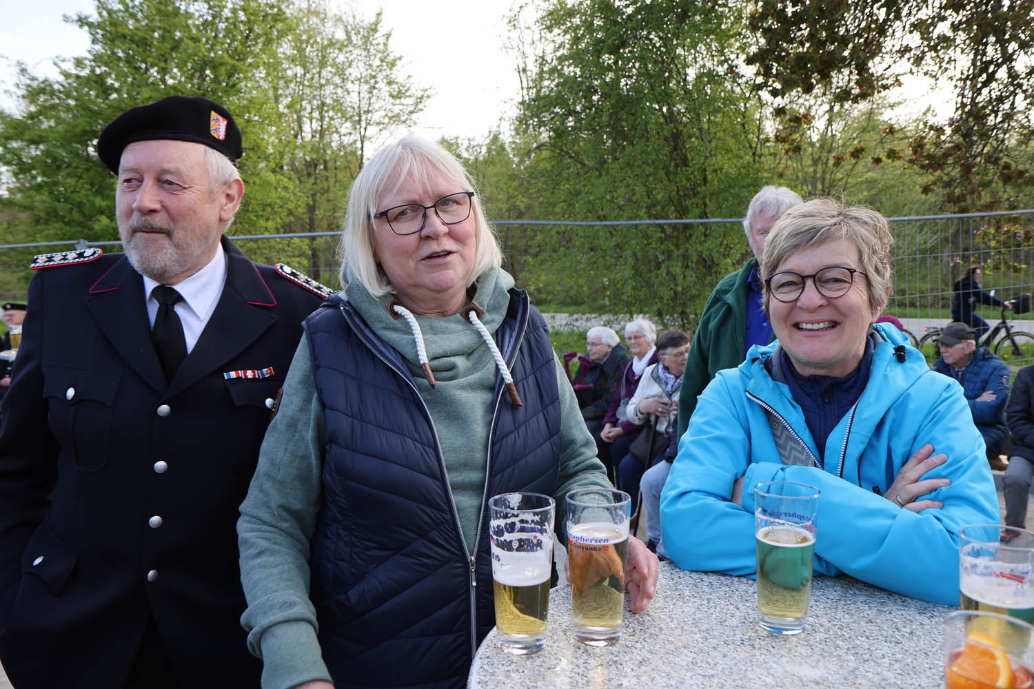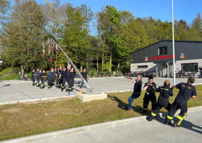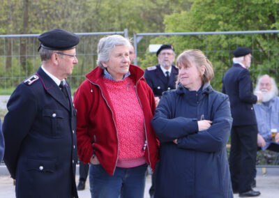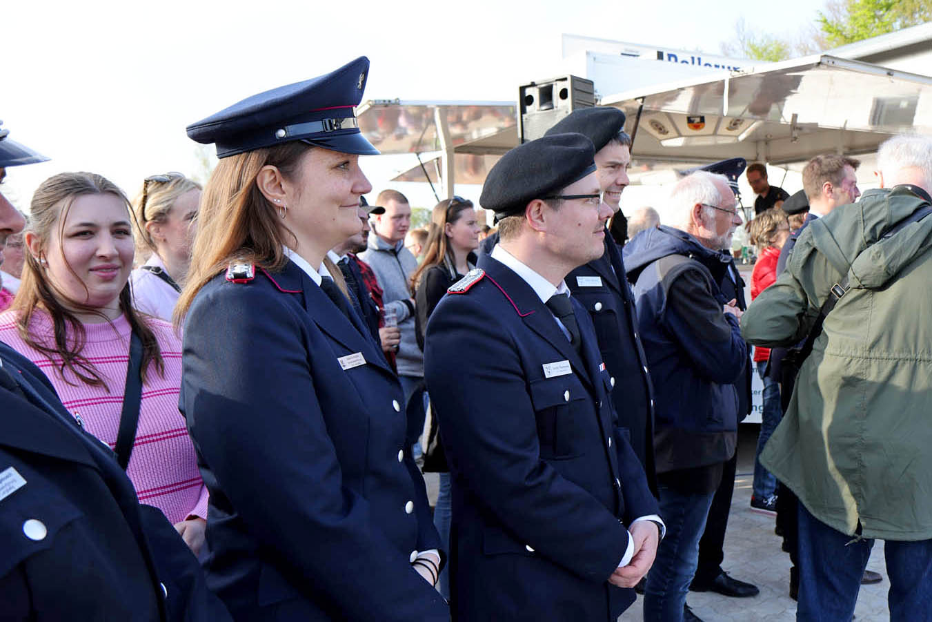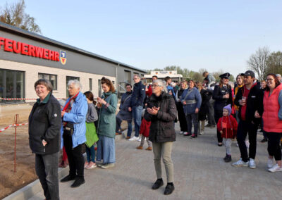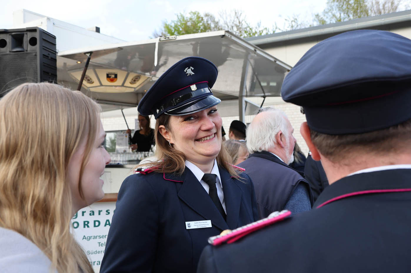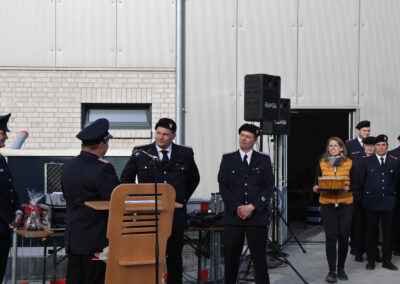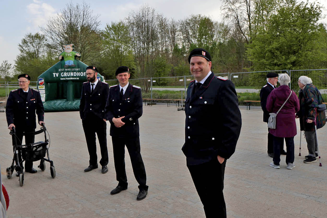 Nach dem die beiden Wehren gemeinsam den Maibaum an seinen neuen Bestimmungsort gebracht haben, begann der offizielle Teil mit den Grußreden aus Politik, Feuerwehren und dem Architekten. Am Ende wurde die Schlüssel symbolisch an die Wehrführer übergeben.