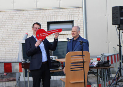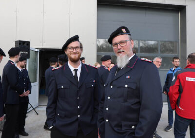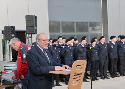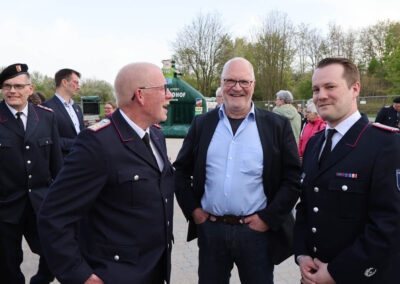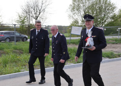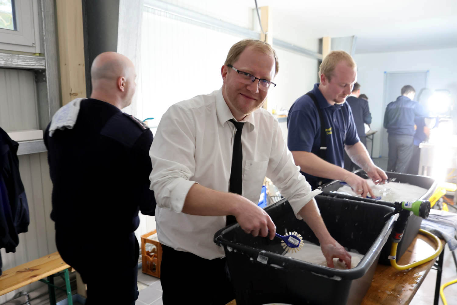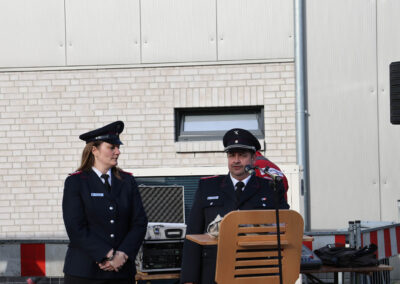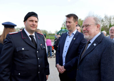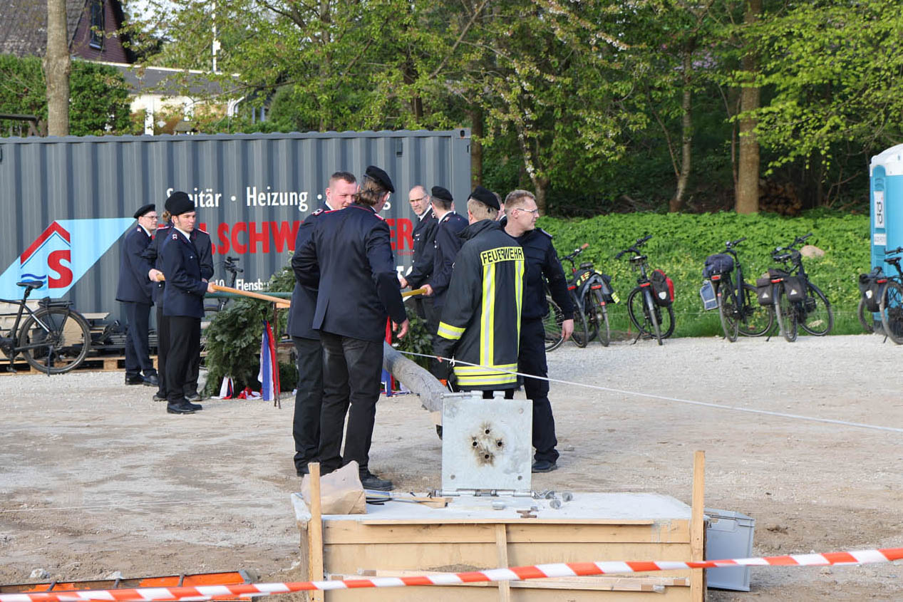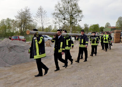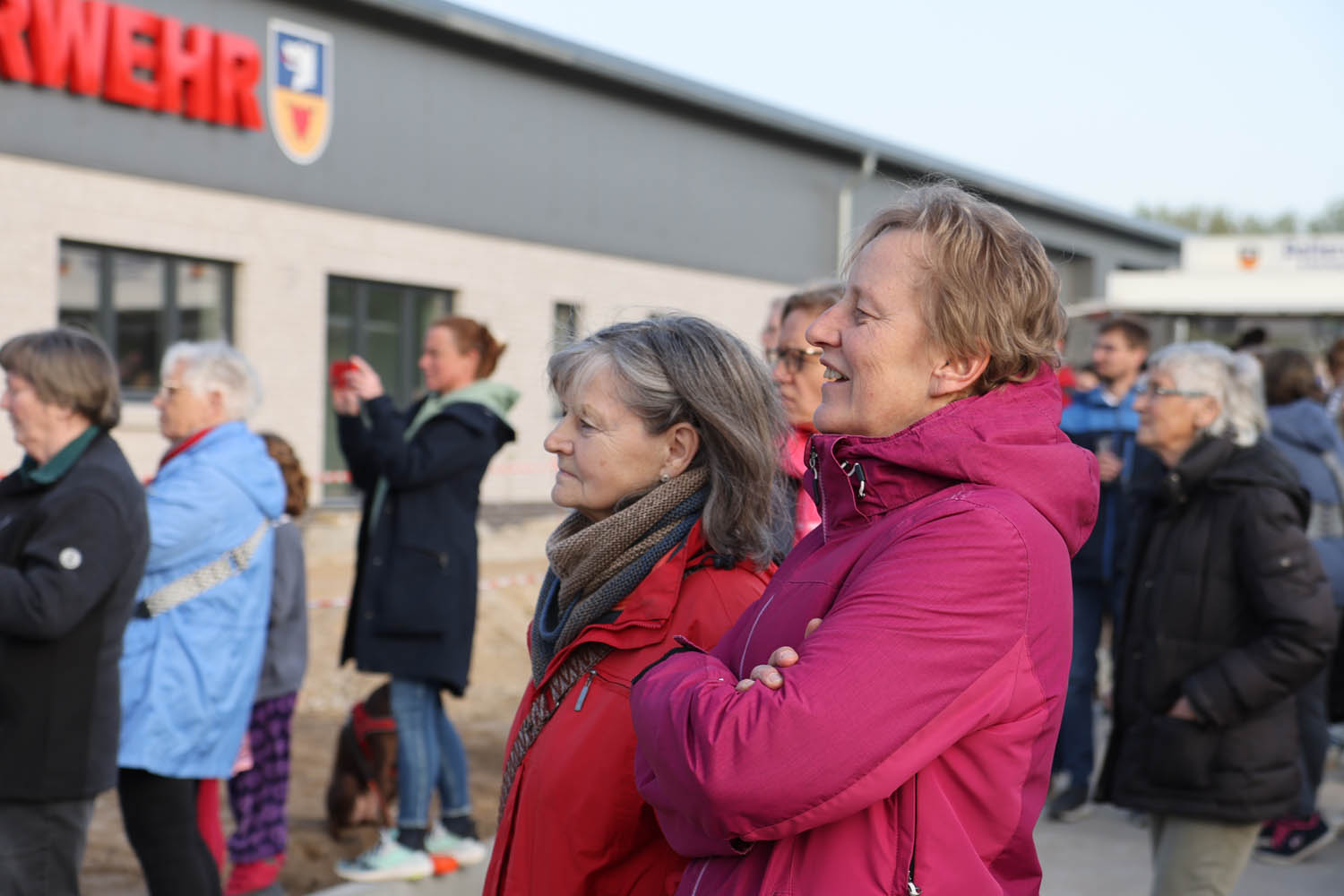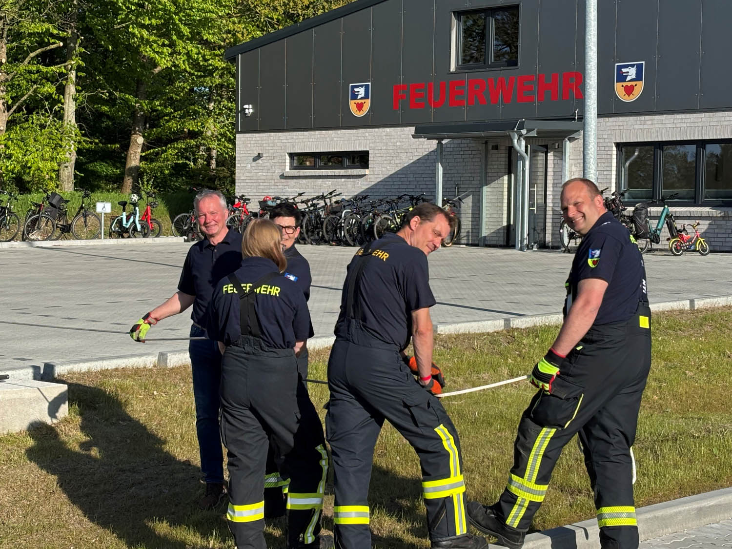 Nach dem die beiden Wehren gemeinsam den Maibaum an seinen neuen Bestimmungsort gebracht haben, begann der offizielle Teil mit den Grußreden aus Politik, Feuerwehren und dem Architekten. Am Ende wurde die Schlüssel symbolisch an die Wehrführer übergeben.