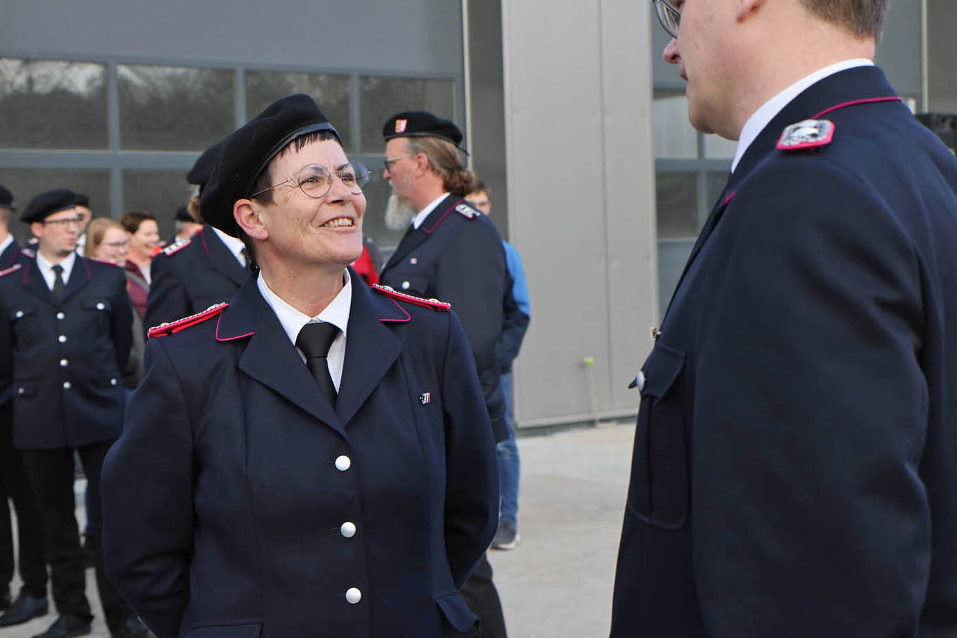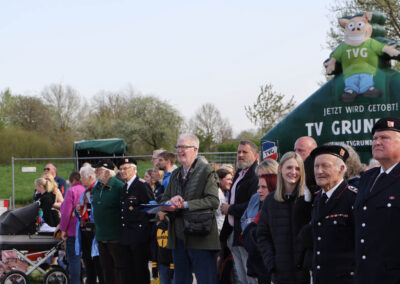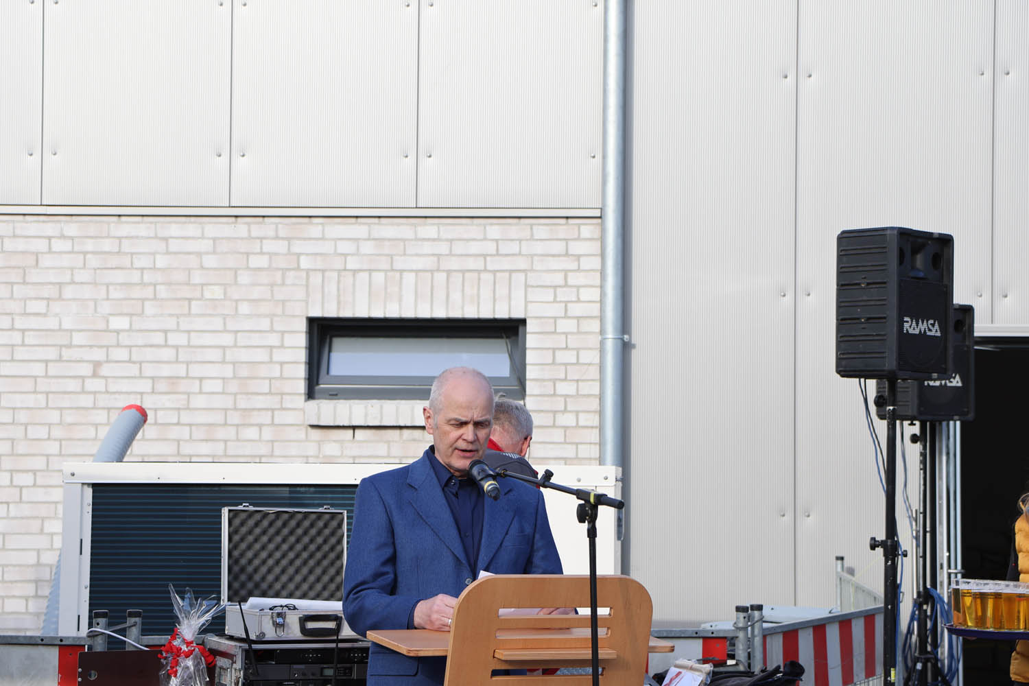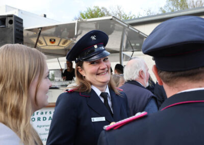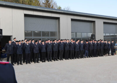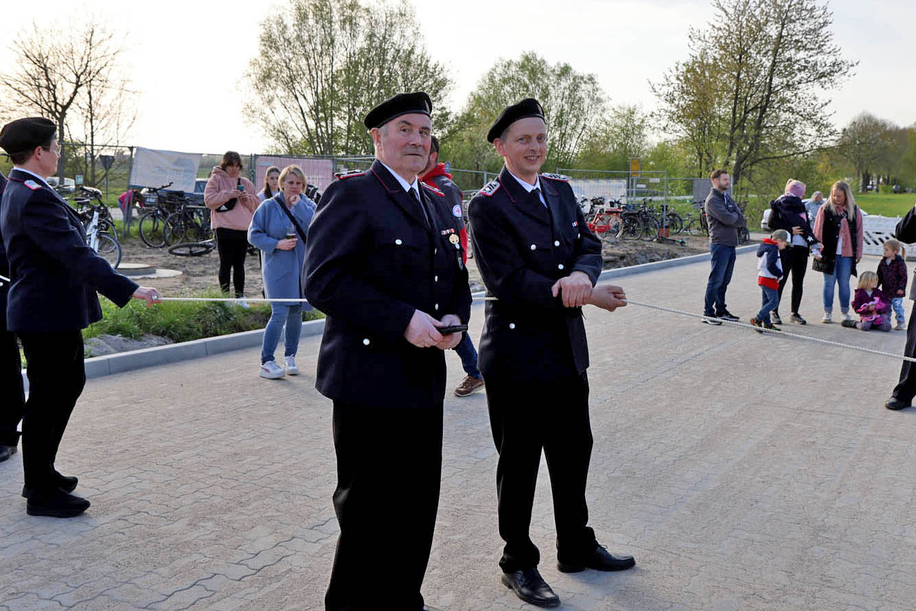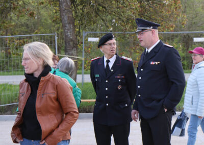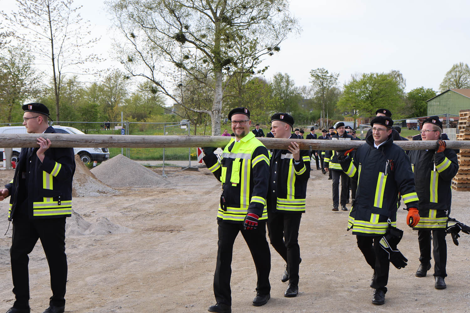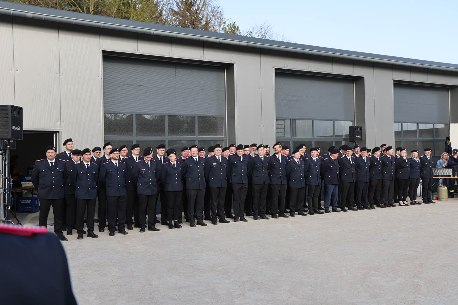 Nach dem die beiden Wehren gemeinsam den Maibaum an seinen neuen Bestimmungsort gebracht haben, begann der offizielle Teil mit den Grußreden aus Politik, Feuerwehren und dem Architekten. Am Ende wurde die Schlüssel symbolisch an die Wehrführer übergeben.