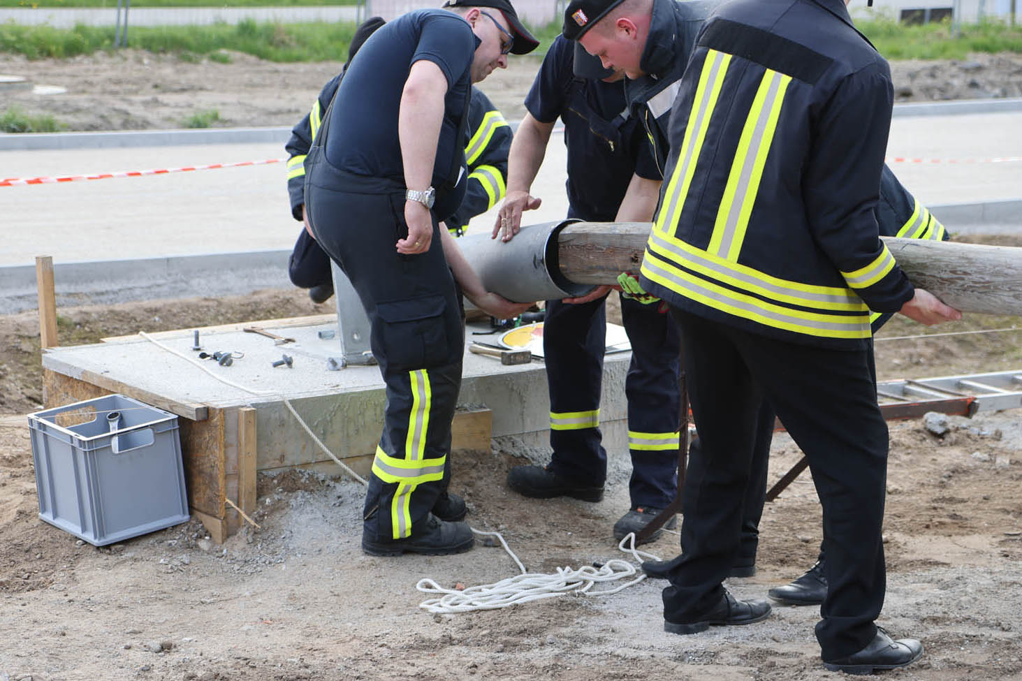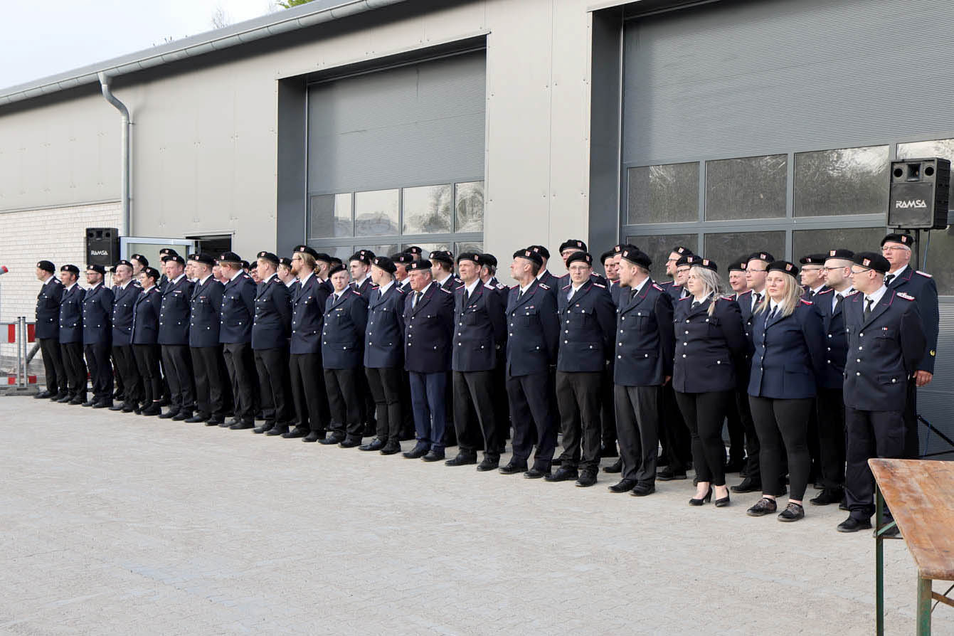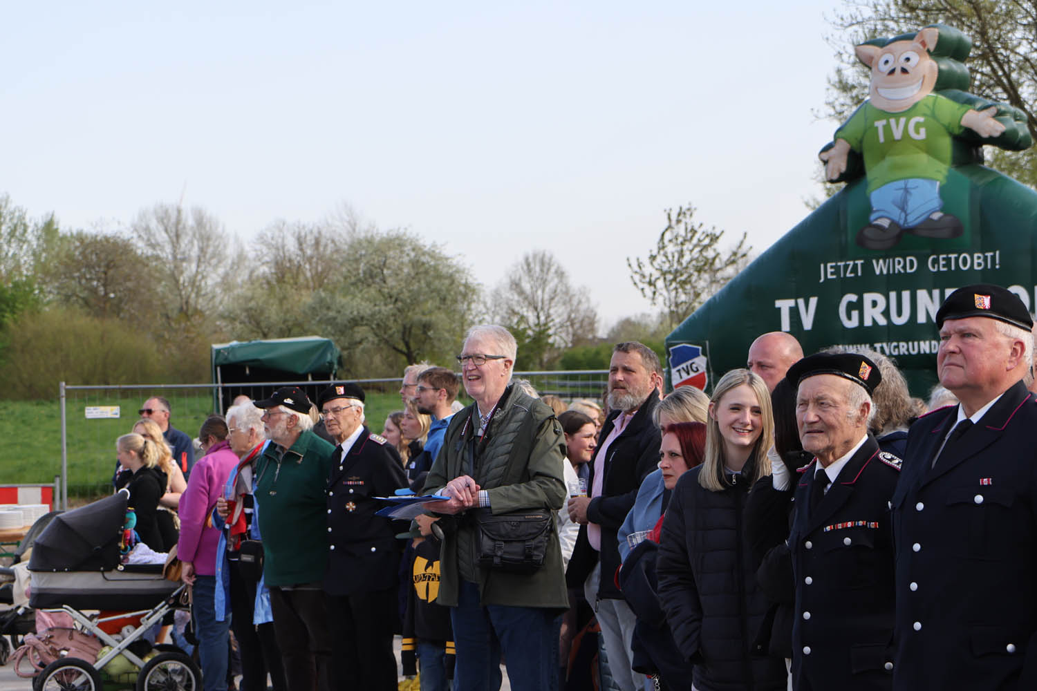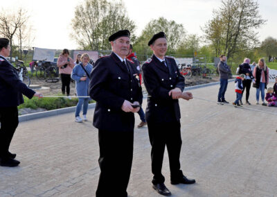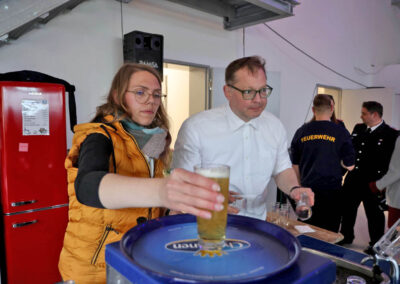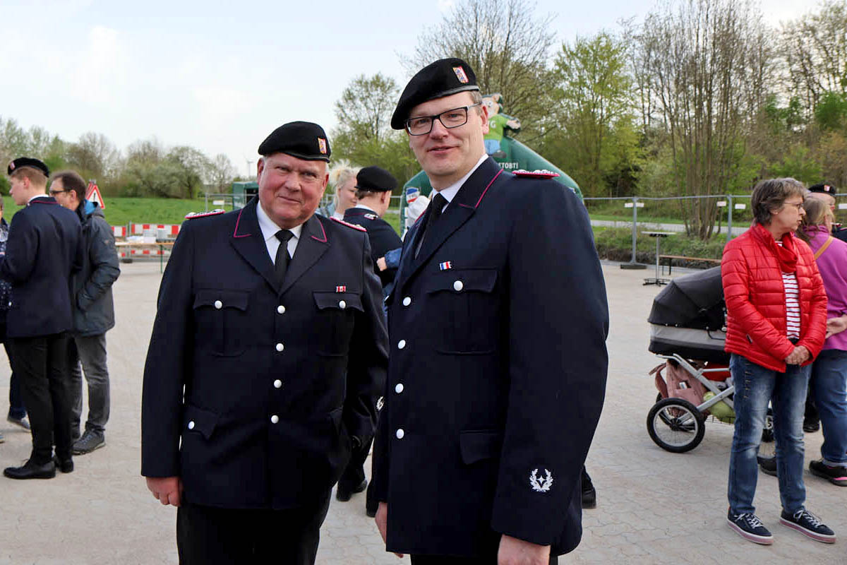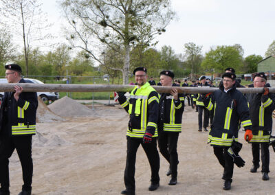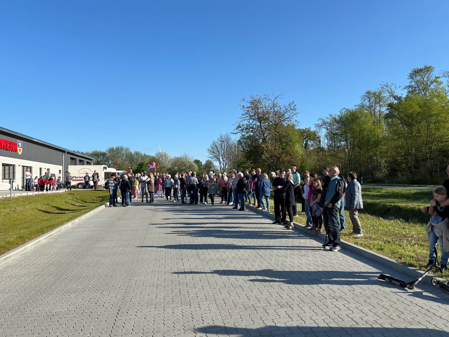 Nach dem die beiden Wehren gemeinsam den Maibaum an seinen neuen Bestimmungsort gebracht haben, begann der offizielle Teil mit den Grußreden aus Politik, Feuerwehren und dem Architekten. Am Ende wurde die Schlüssel symbolisch an die Wehrführer übergeben.