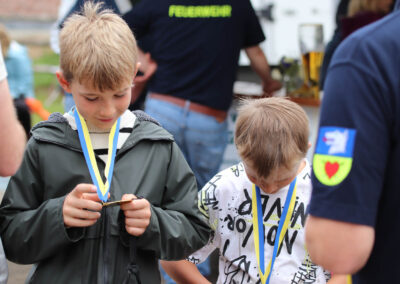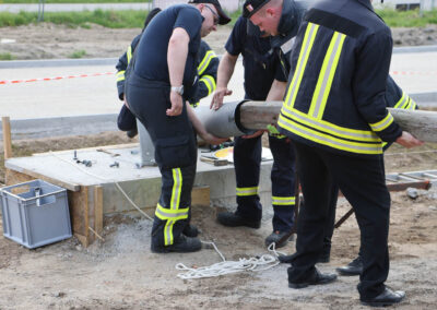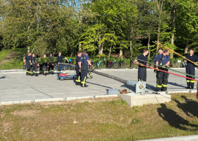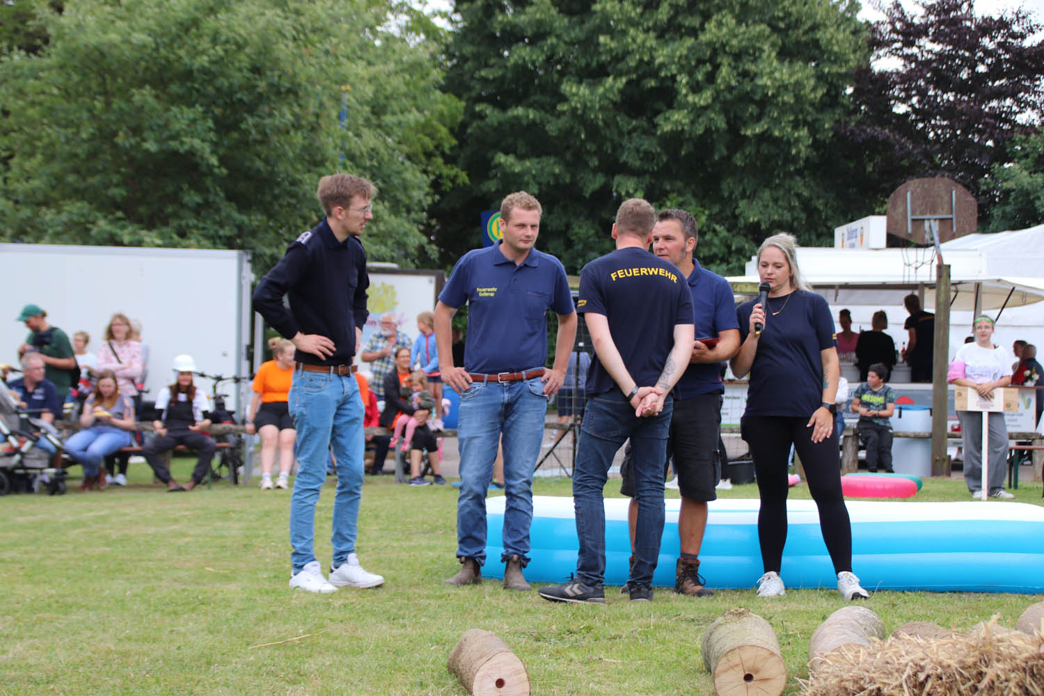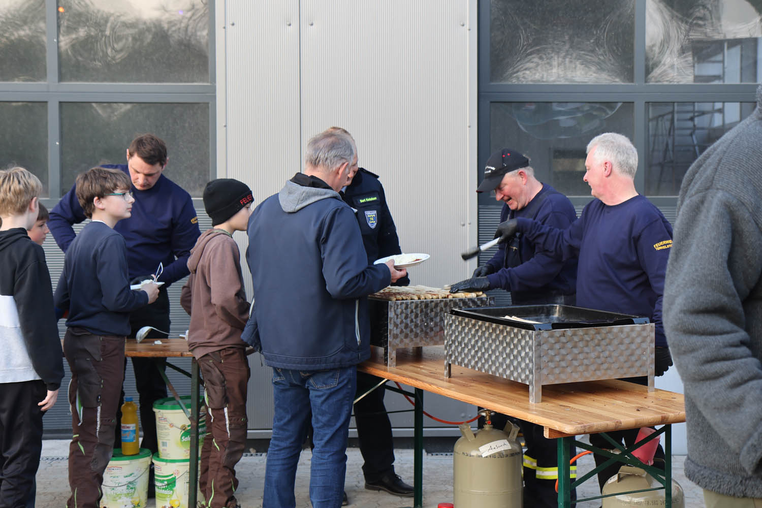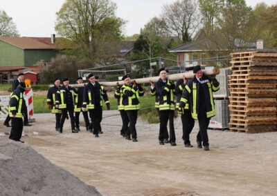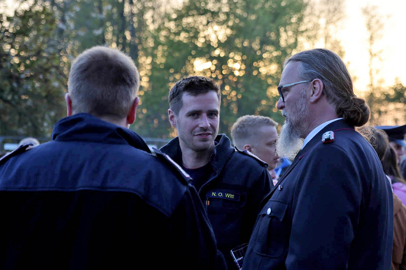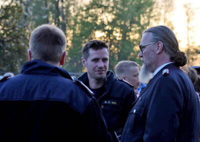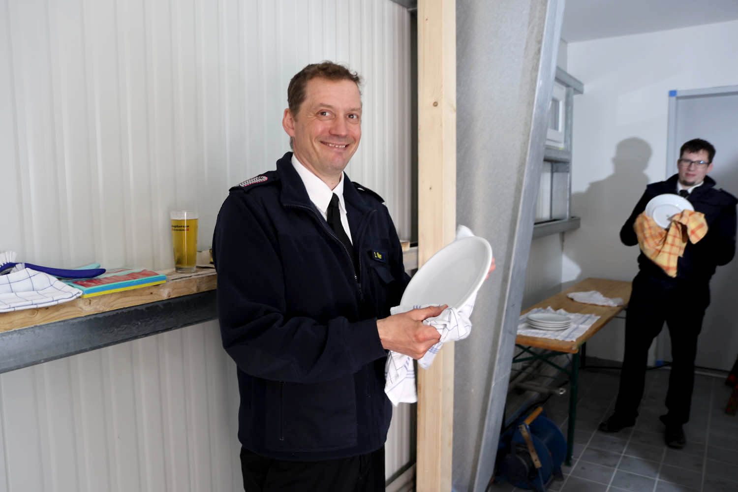 Nach dem die beiden Wehren gemeinsam den Maibaum an seinen neuen Bestimmungsort gebracht haben, begann der offizielle Teil mit den Grußreden aus Politik, Feuerwehren und dem Architekten. Am Ende wurde die Schlüssel symbolisch an die Wehrführer übergeben.