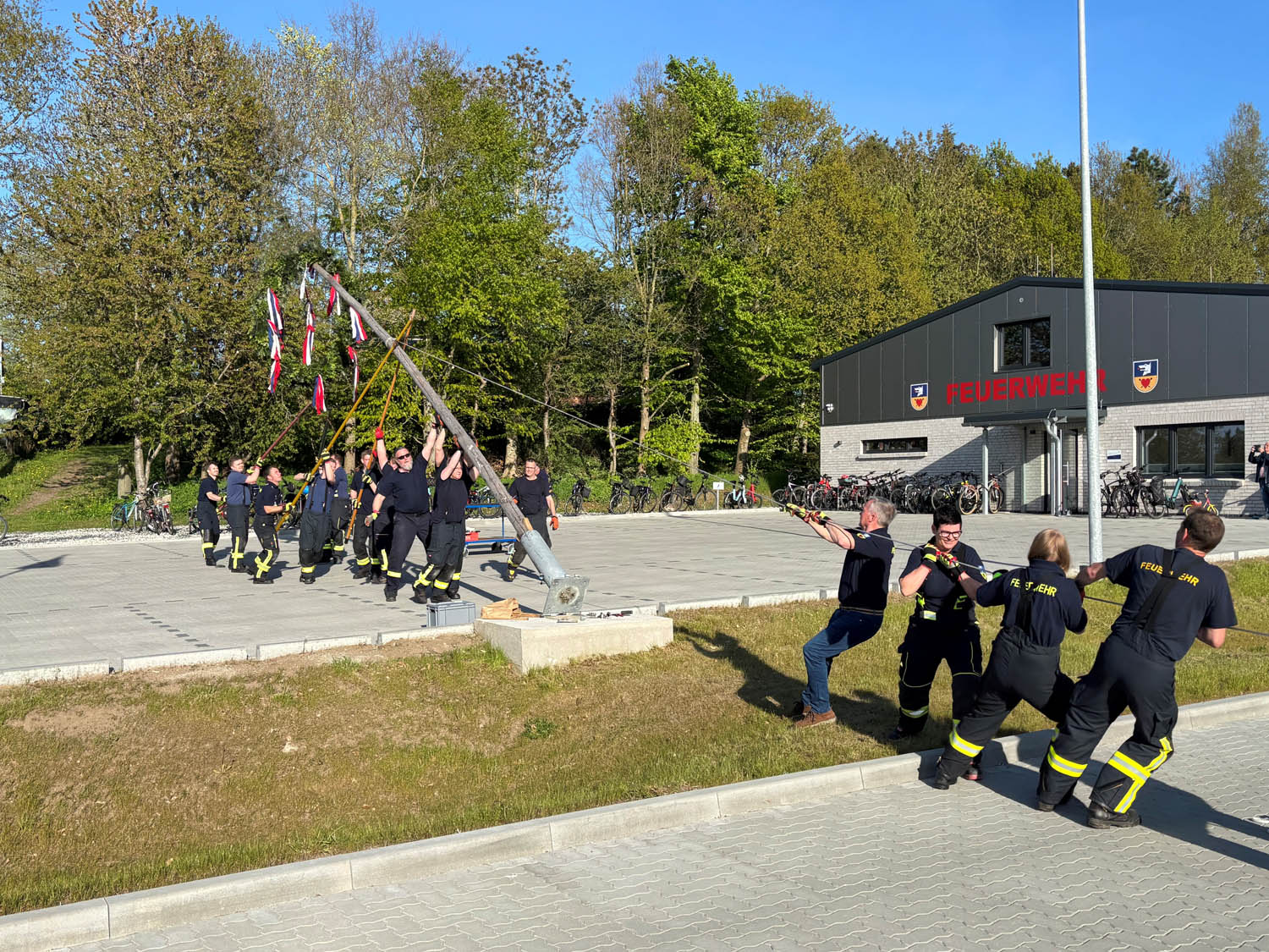 Am 30.04. fand bei bestem Wetter die Einweihung unseres neuen Gerätehauses für die Wehren Dollerup und Terkelstoft statt. Die Einweihung wurde mit dem traditionellen Aufstellen des Maibaumes kombiniert. Ca. 400 Gäste ließen sich die Chance nicht entgehen, das neue Gebäude zu besichtigen.